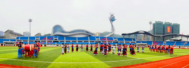 苗鼓是湘西苗族的圣物,更是民族的瑰宝。湘西苗族鼓舞作为珍贵的少数民族非物质文化遗产,具有悠久的历史,凝聚了苗族人民的信仰、气节与民族精神。为弘扬民族传统体育文化,丰富社区居民的业余文化生活,增强传统文化的自信和认同,培养健康生活的理念,基础课部党支部携手龙凤社区党支部于5月21日下午在学院田径场开展了“八合鼓武”进社区主题党日交流活动。