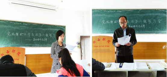 余剑春同志宣读学院党风廉政建设工作会议文件 罗慧明同志辅导党员学习“两学一做”