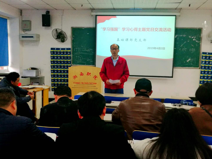 2019年4月2日(星期二)下午2:30分,党支部召开了“学习强国”学习心得交流主题党日活动,学习强国给了我们一个很好的窗口去学习读懂习总书记的讲话精神,去深入了解中国特色社会主义的发展革新。通过交流学习,鼓励全体党员同志认真学习,不断提高学习效果。